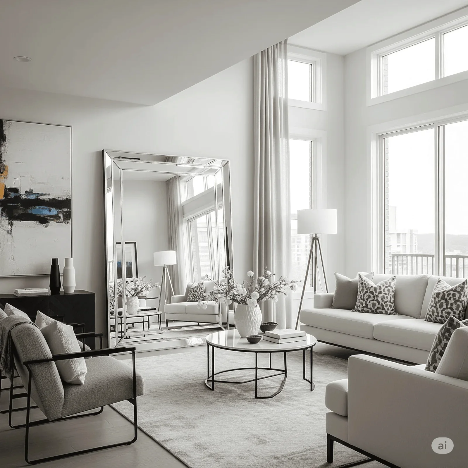 Aynalar, doğru yerleştirildiğinde mekânın doğal ışığını yansıtarak aydınlık bir atmosfer yaratır. Geniş salonlar için büyük çerçeveli duvar aynaları tercih edilirken, küçük odalarda uzun ince aynalar tercih edilebilir.